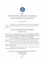 Mai jos găsiți documentele noastre care garantează calitatea și conformitatea produselor noastre. Avizele tehnice, agrementele și certificările sunt disponibile pentru descărcare în format PDF, oferindu-vă încredere deplină în standardele noastre de producție.